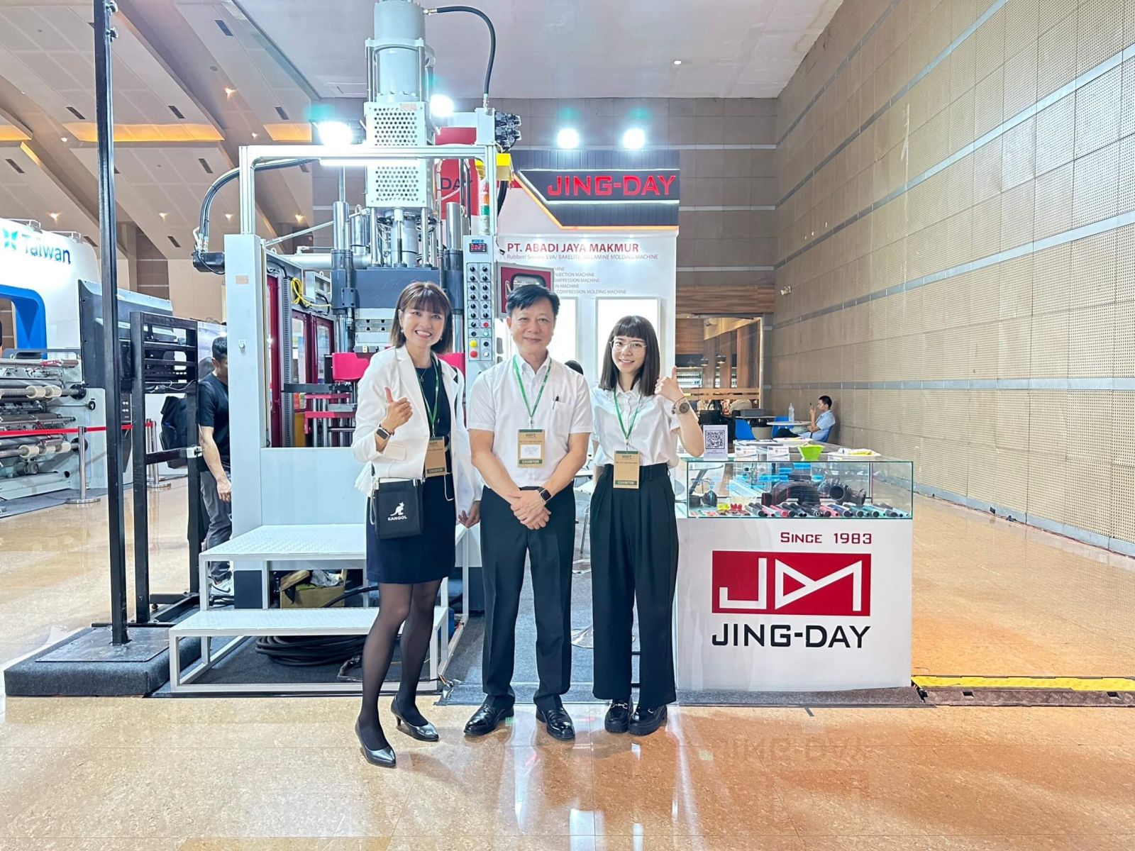 年初就來過印尼與客戶深入洽談,掌握了接下來的需求與趨勢後,這次展出的橡膠成型機就是客戶先下訂的設備。