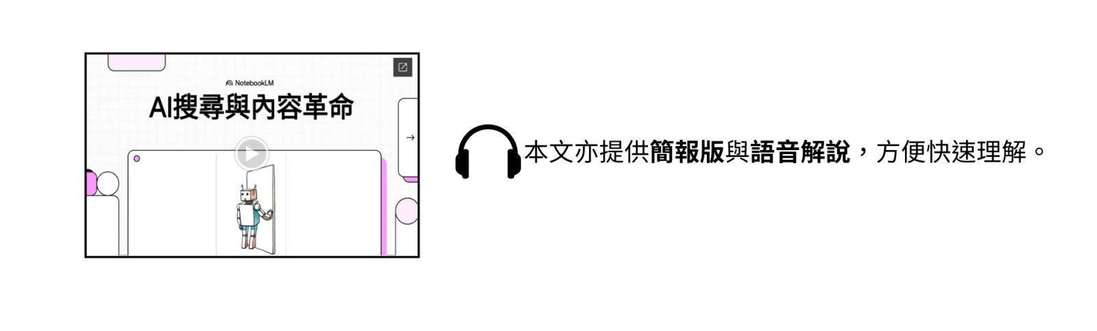 不論是幫助你「快速理解主題」的 AI Overviews,或是「針對具體情境持續追問」的 AI Mode,AI 搜尋正在重新定義「好內容」的標準。