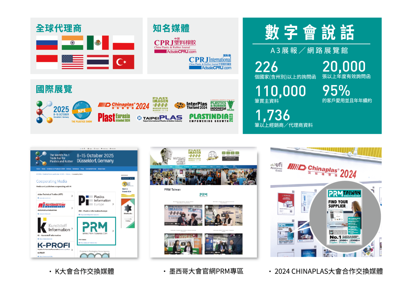 未來的國際競爭,不再是誰的攤位最大,而是誰最懂如何讓曝光延續、讓品牌被看見。 PRM,正以專業的國際行銷節奏,陪伴台灣塑橡膠產業,持續向世界發聲。