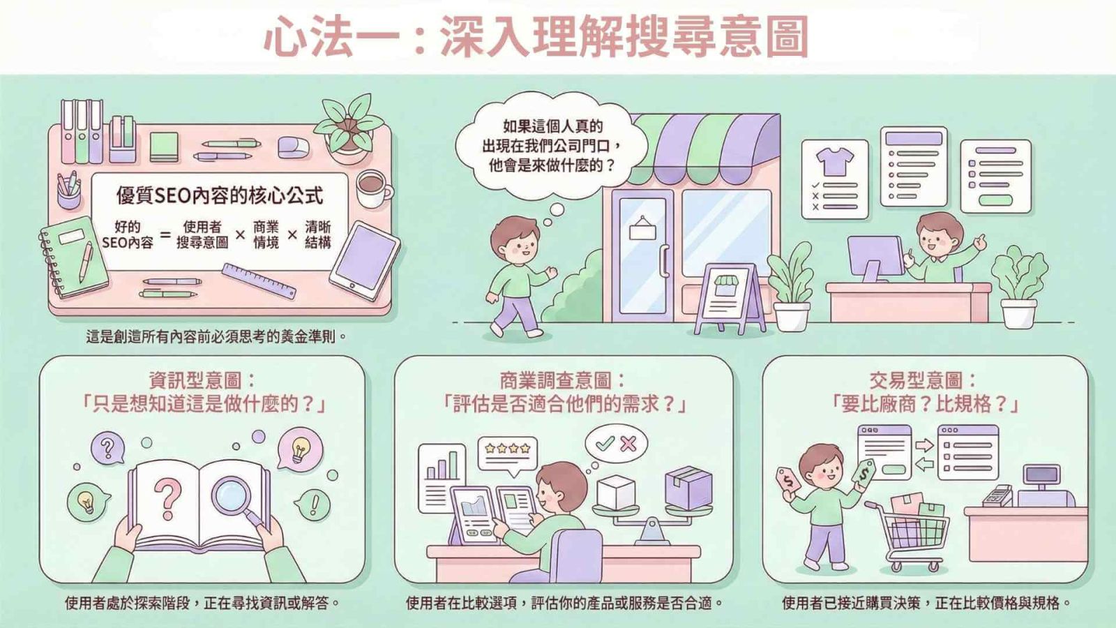 優質內容 = 使用者搜尋意圖 × 商業情境 × 清晰結構