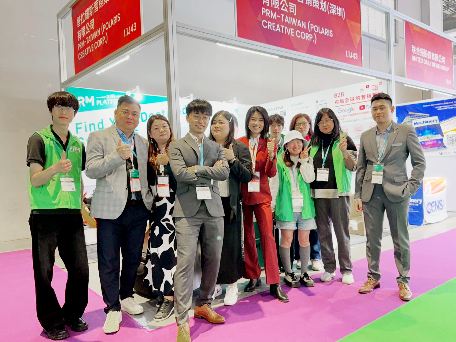 普拉瑞斯這次共有 6 位夥伴參加 CHINAPLAS,由 Alice 帶著 PRM 夥伴 Emily、Kathy、Jason、Daniel 和普拉瑞斯海外駐點副總 Joey 來服務廠商,與許多台灣廠商同在 1.1 館,可以就近支援現場各種狀況(包含臨時需要協助接待、語言、或買主資訊整理)。