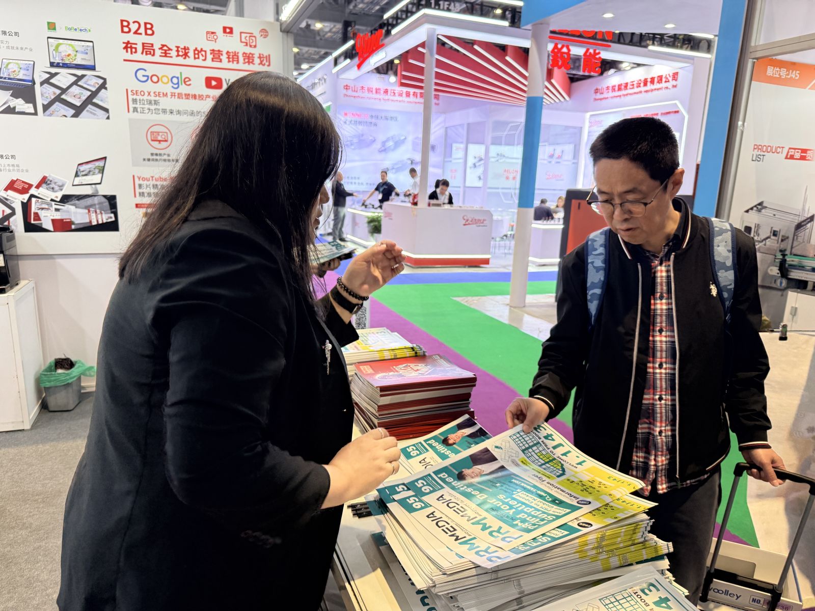 ► PRM 特派代表 Alice、Jason 認真收集 CHINAPLAS 2026 展會消息。(圖片來源:CHINAPLAS 2026 國際橡塑展官方圖片直播間。)
